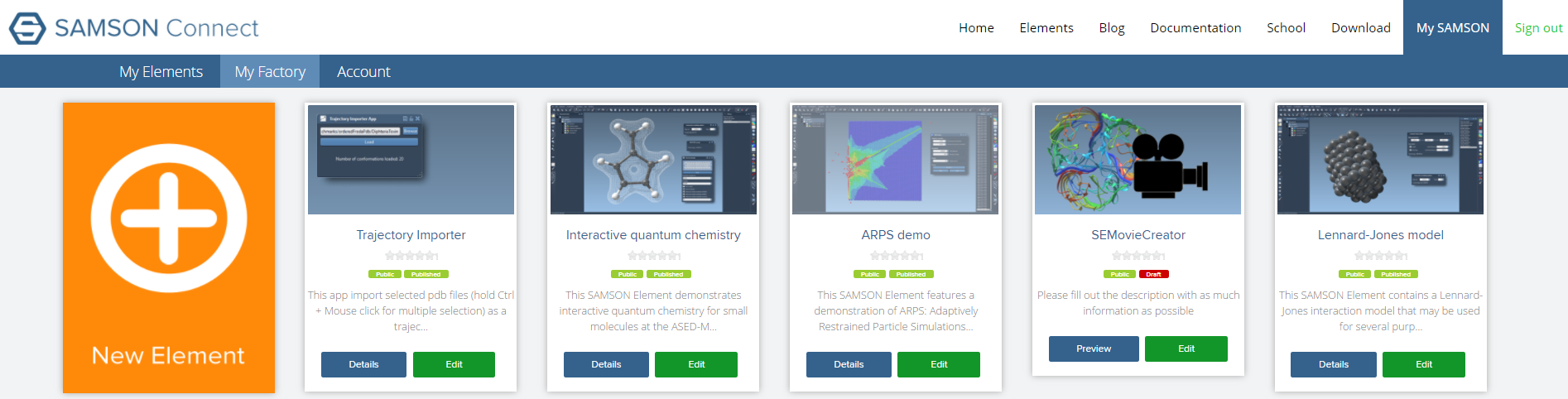 Now you should see your SAMSON Extension in My Factory. At this step, the SAMSON Extension is not yet published, it is in draft mode.