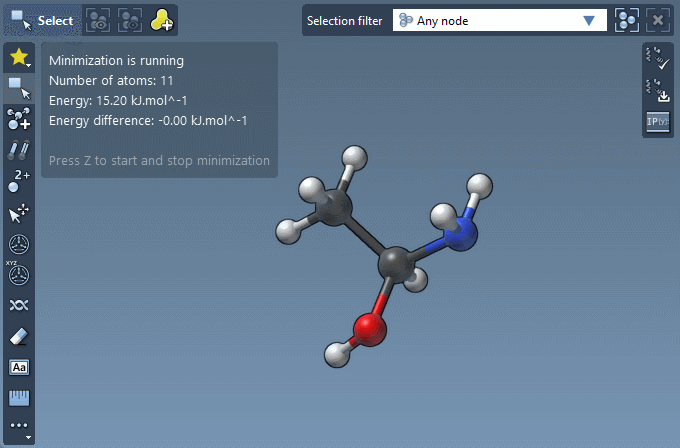 Note: You can always apply interactive minimization (as done at the end in the example above) by pressing Z (or via Edit menu > Minimize). To stop the interactive minimization, press Z once again.