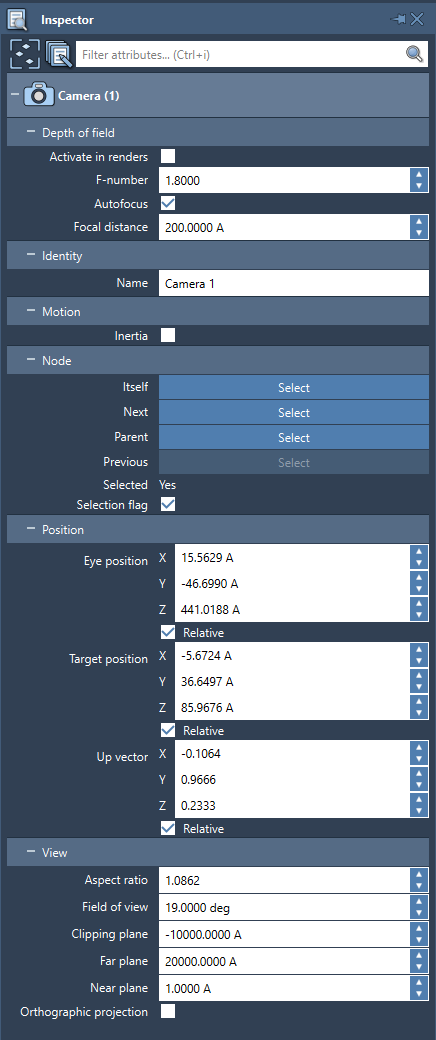 A camera is a part of a SAMSON Document, and each document has at least one camera. A camera is saved/loaded with a Document in SAMSON file formats (.sam, .samx).