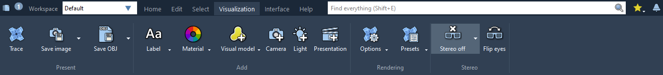 If you have a special glasses for a stereo view, you can activate the stereo in the Visualization menu.