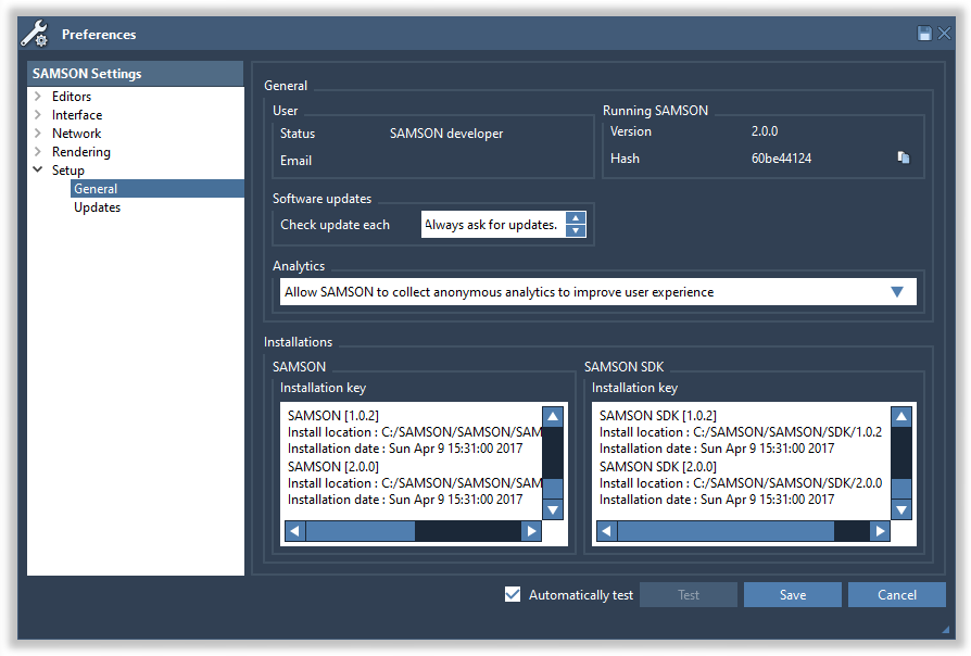 The general installation info can be viewed in the Installation > General section of the Preferences panel: